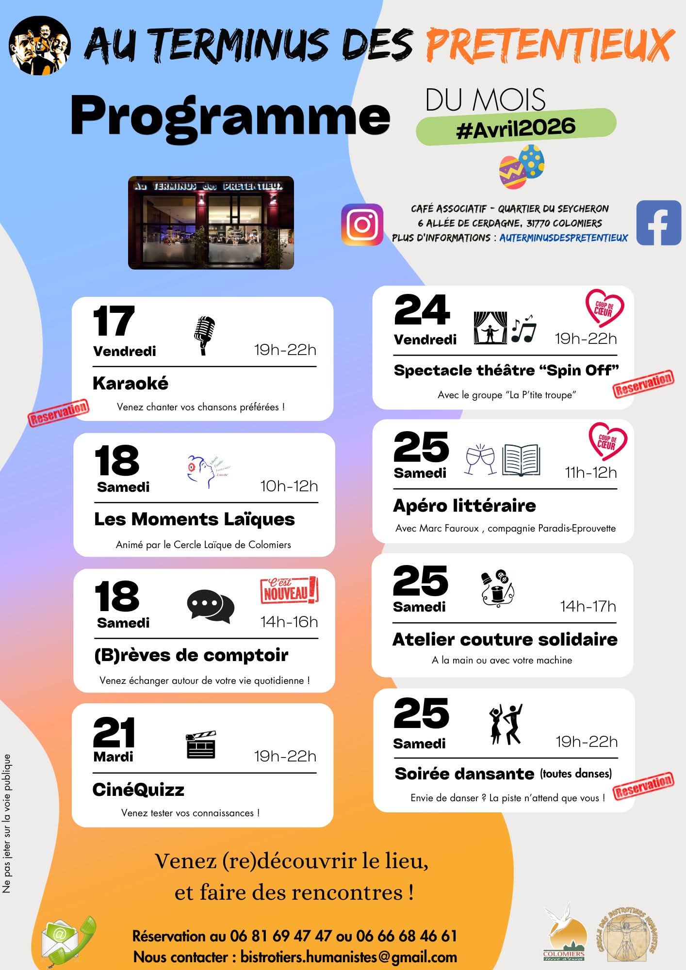 De nombreuses activités y sont proposées par l'association le Cercle des Bistrotiers humanistes (concert, café des langues, apéro littéraire, théâtre…).